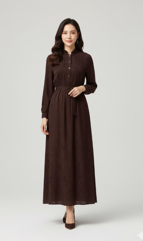 Fuat Gürşen 4105 Büyük B Yarım Düğme Detay Elbise - Kahve