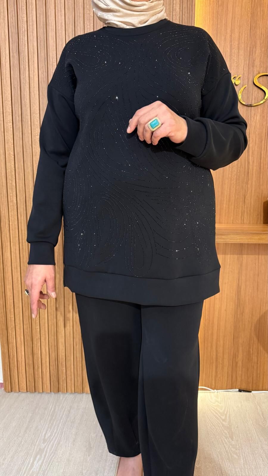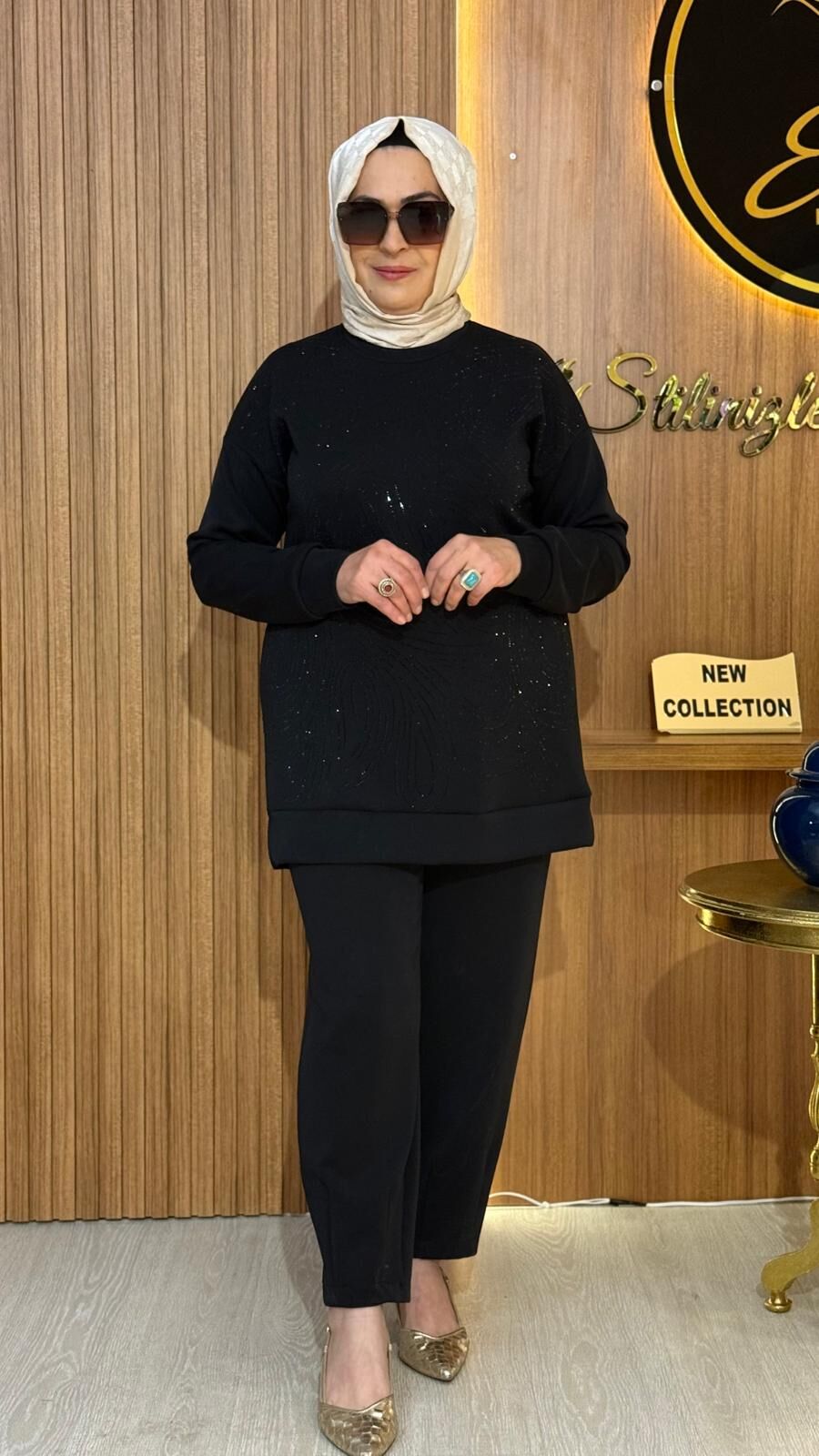 FUAT GÜRŞEN 4337 TAŞ BASKILI PANTOLONLU TAKIM / SİYAH