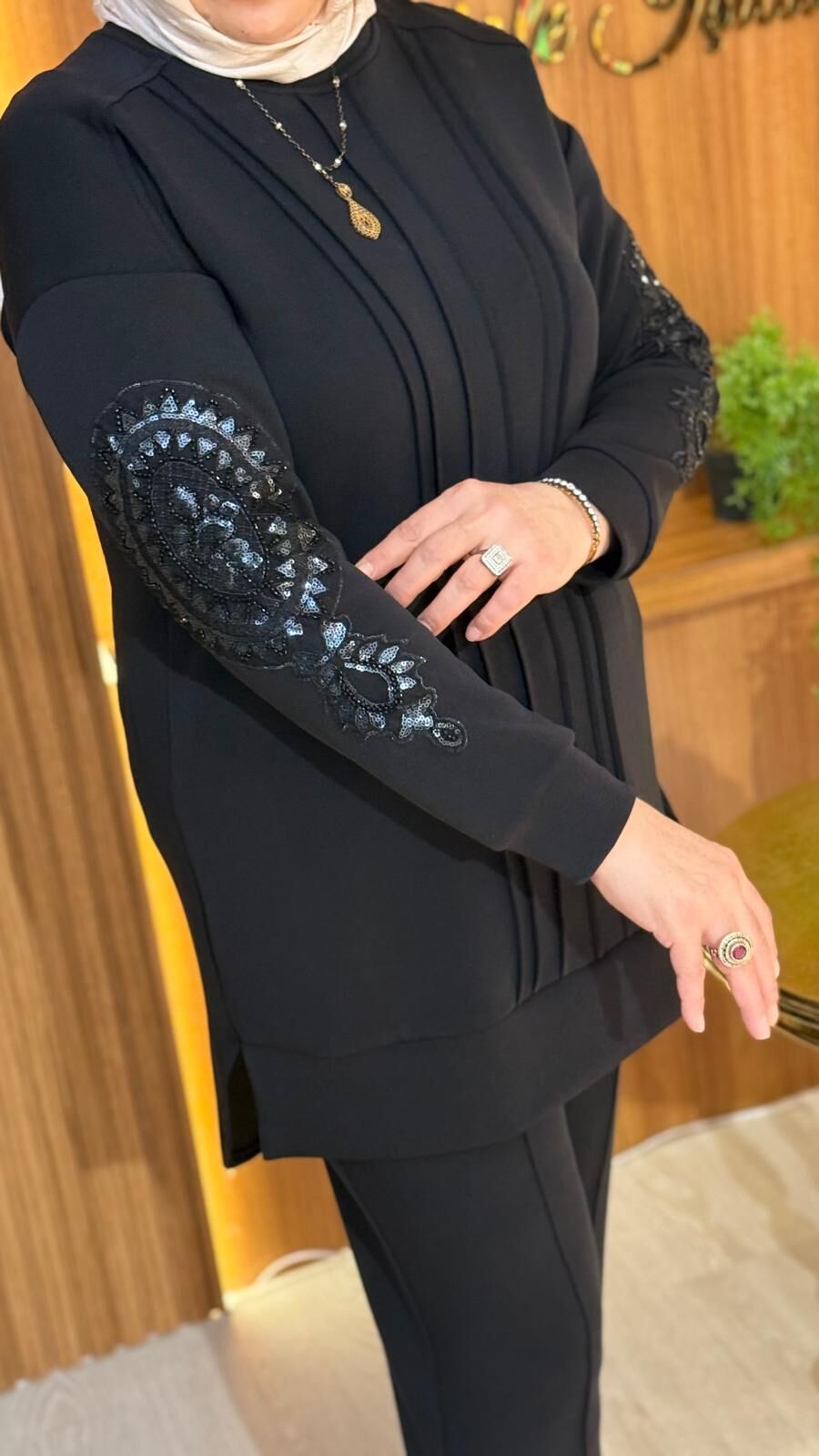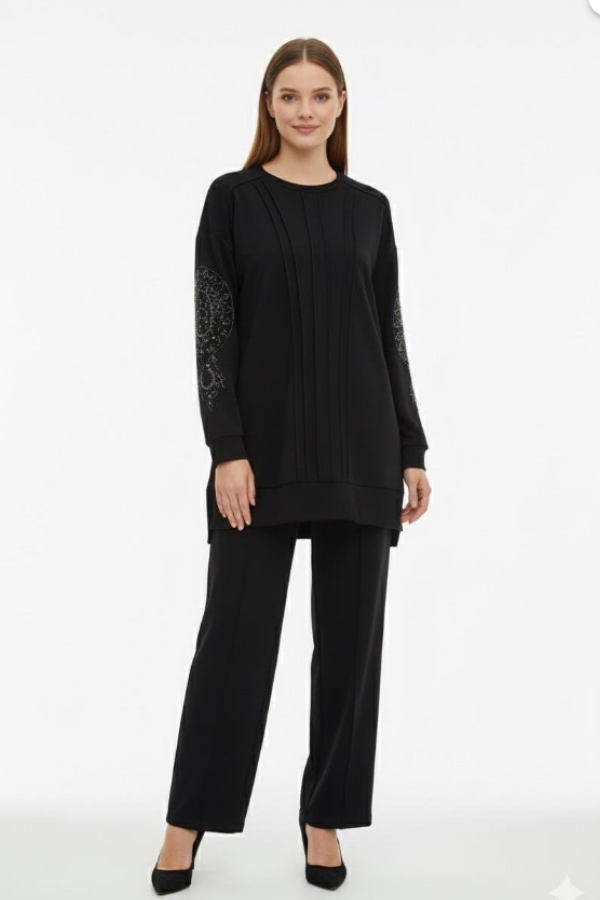 FUAT GÜRŞEN 4339 KOLU İŞLEMELİ PANTOLONLU TAKIM- SİYAH