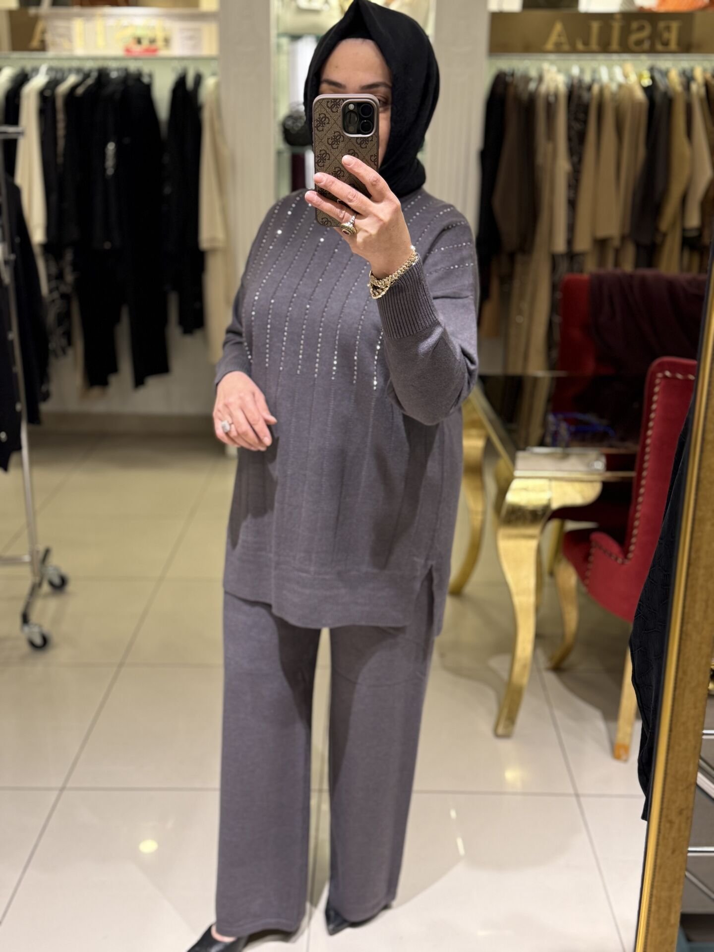 Fuat Gürşen 4350 Dik Taş Baskılı Pantolonlu Takım - Antrasit