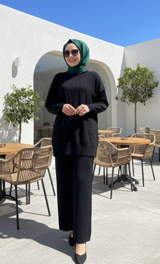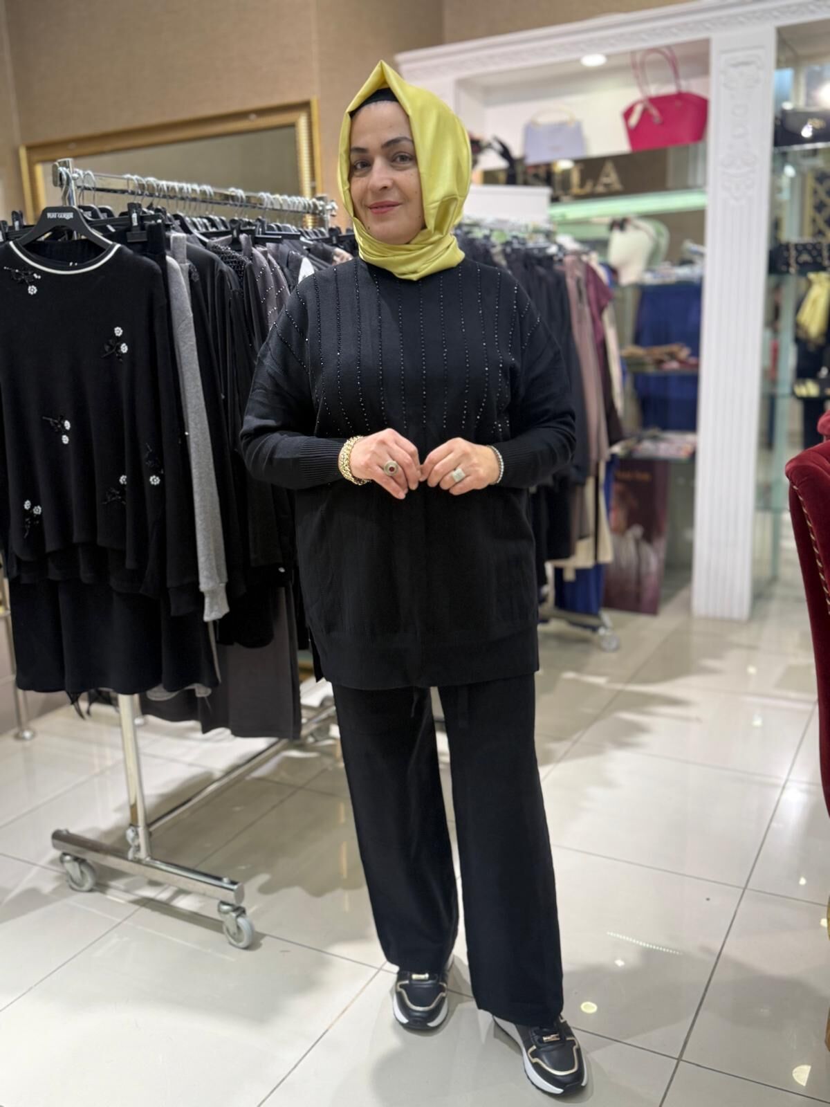 Fuat Gürşen 4350 Dik Taş Baskılı Pantolonlu Takım - Siyah