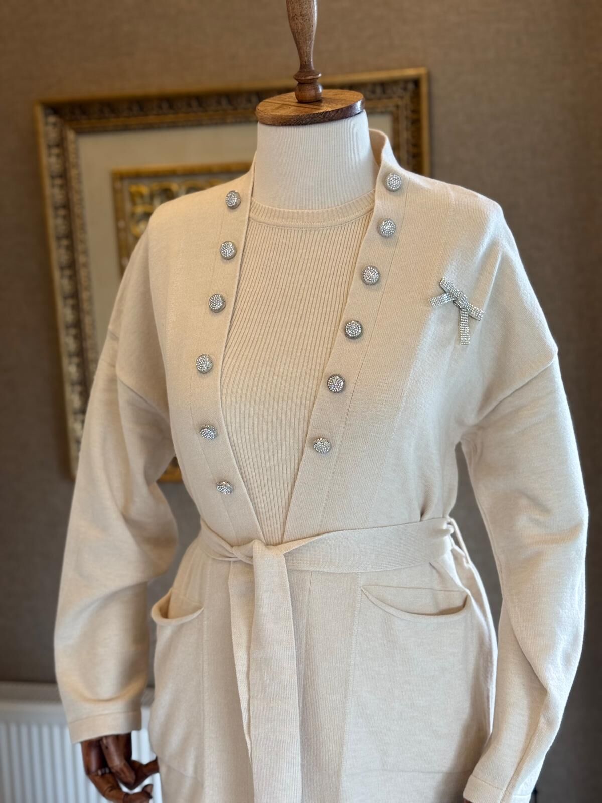 Fuat Gürşen 4703 Yaka Çift Düğme Detaylı Üçlü Takım -Ekru