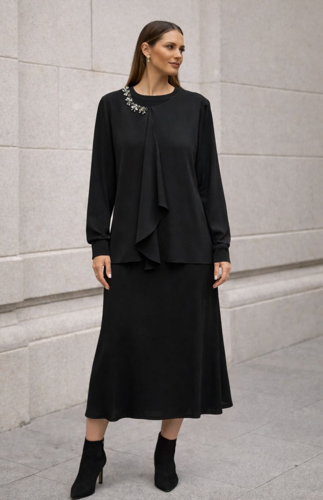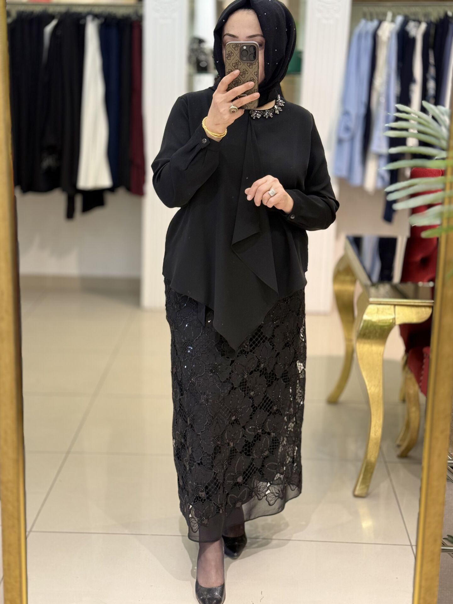 Fuat Gürşen 5310 Yaka Taş İşlemeli Bluz - Siyah
