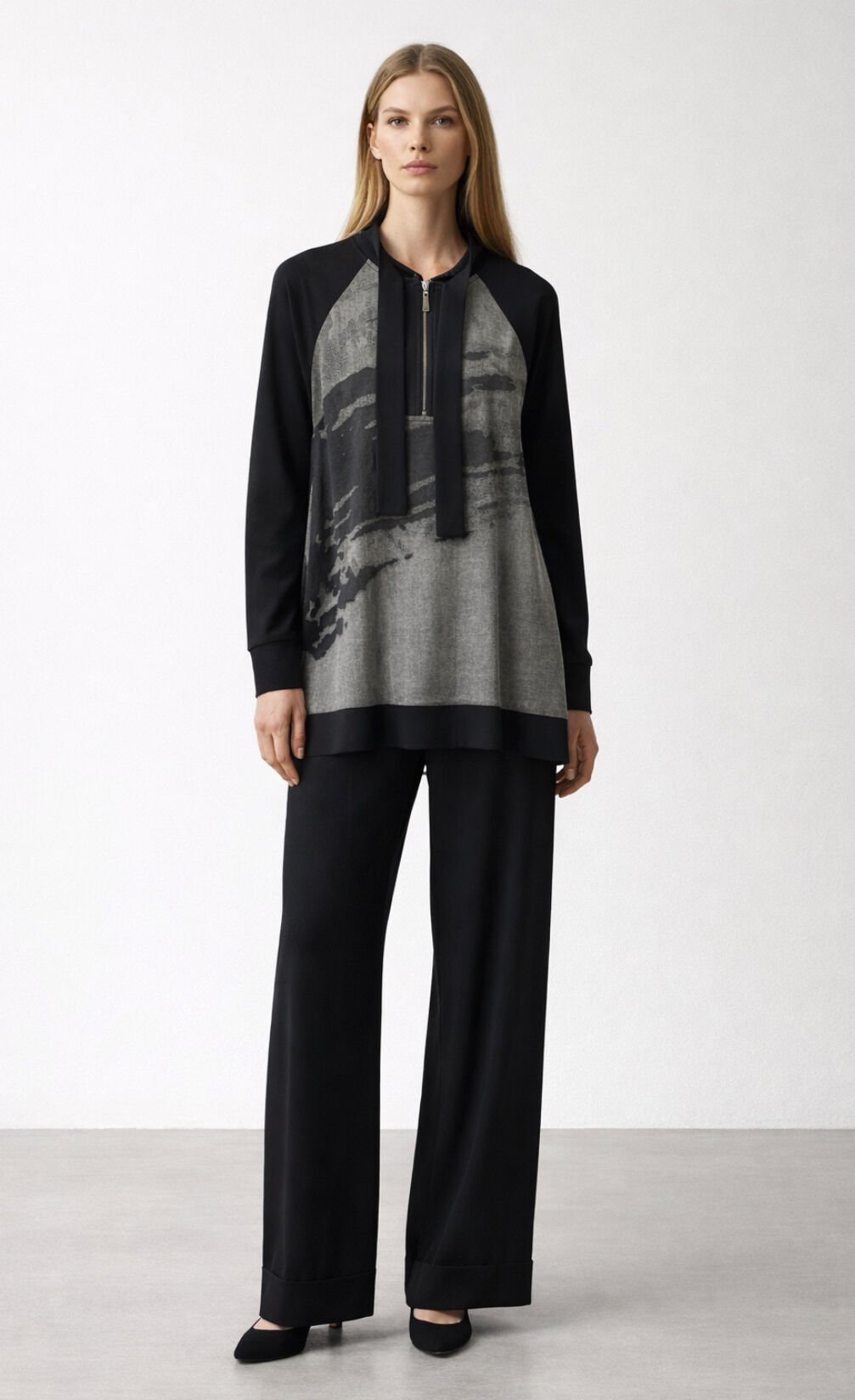 Fuat Gürşen 5343 Yaka Fermuar Detay Pantolonlu Takım - Siyah