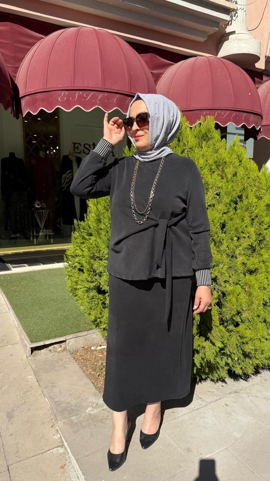FUAT GÜRŞEN BAĞLAMA DETAYLI ETEKLİ TAKIM - SİYAH