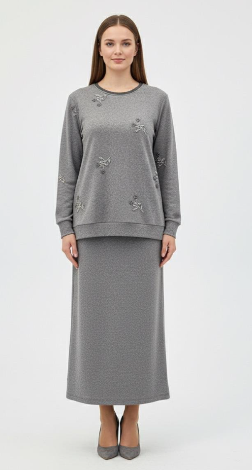FUAT GÜRŞEN 4359 ÇİÇEK İŞLEMELİ ETEKLİ TAKIM / GRİ