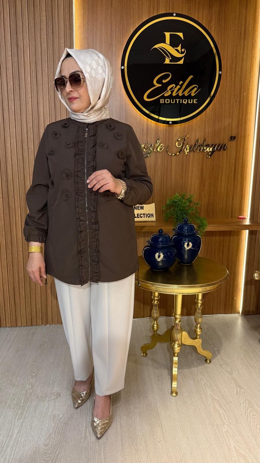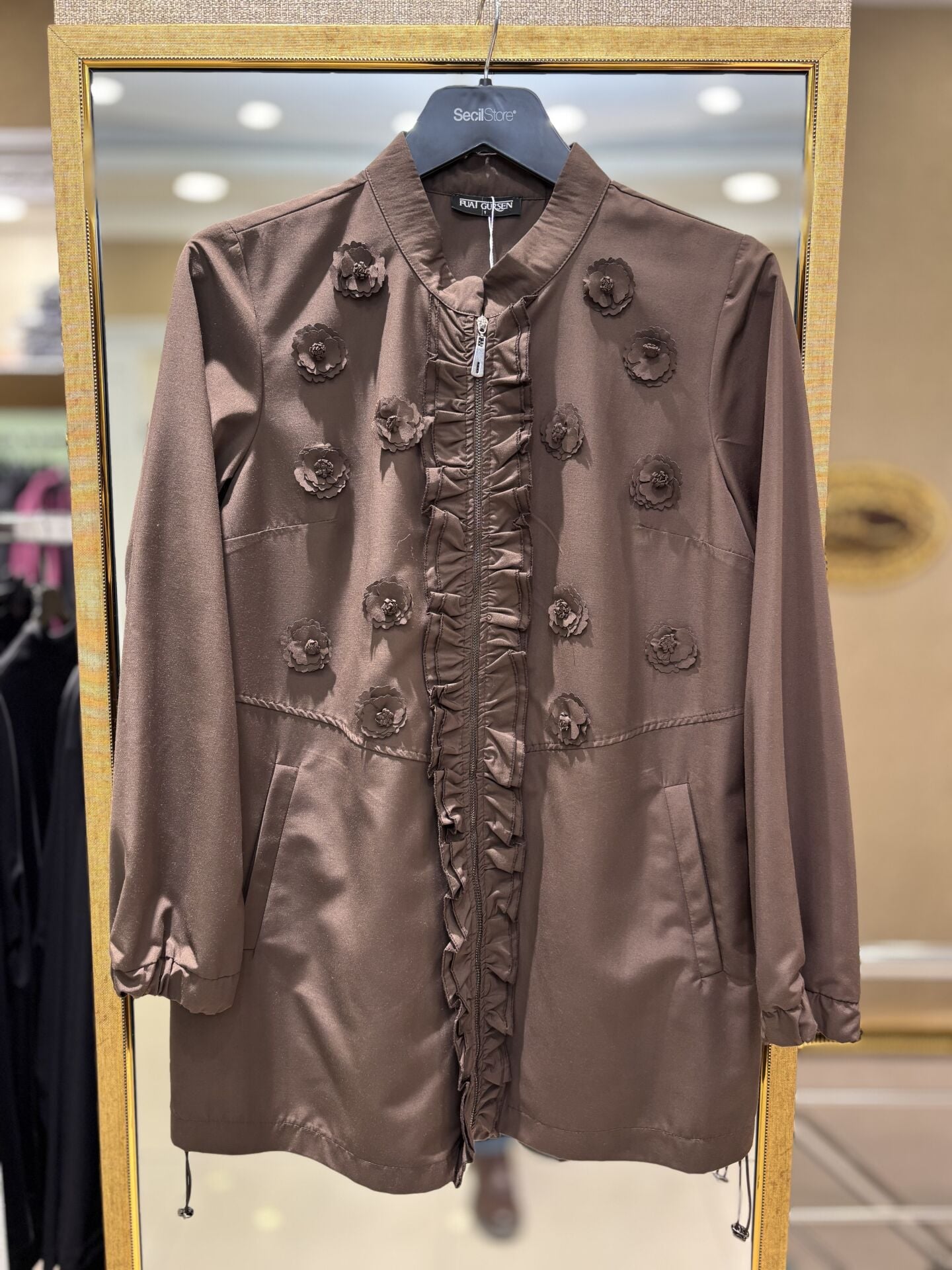 FUAT GÜRSEN Kumaş Gül İşlemeli Nervür Detaylı Hakim Yaka Kap