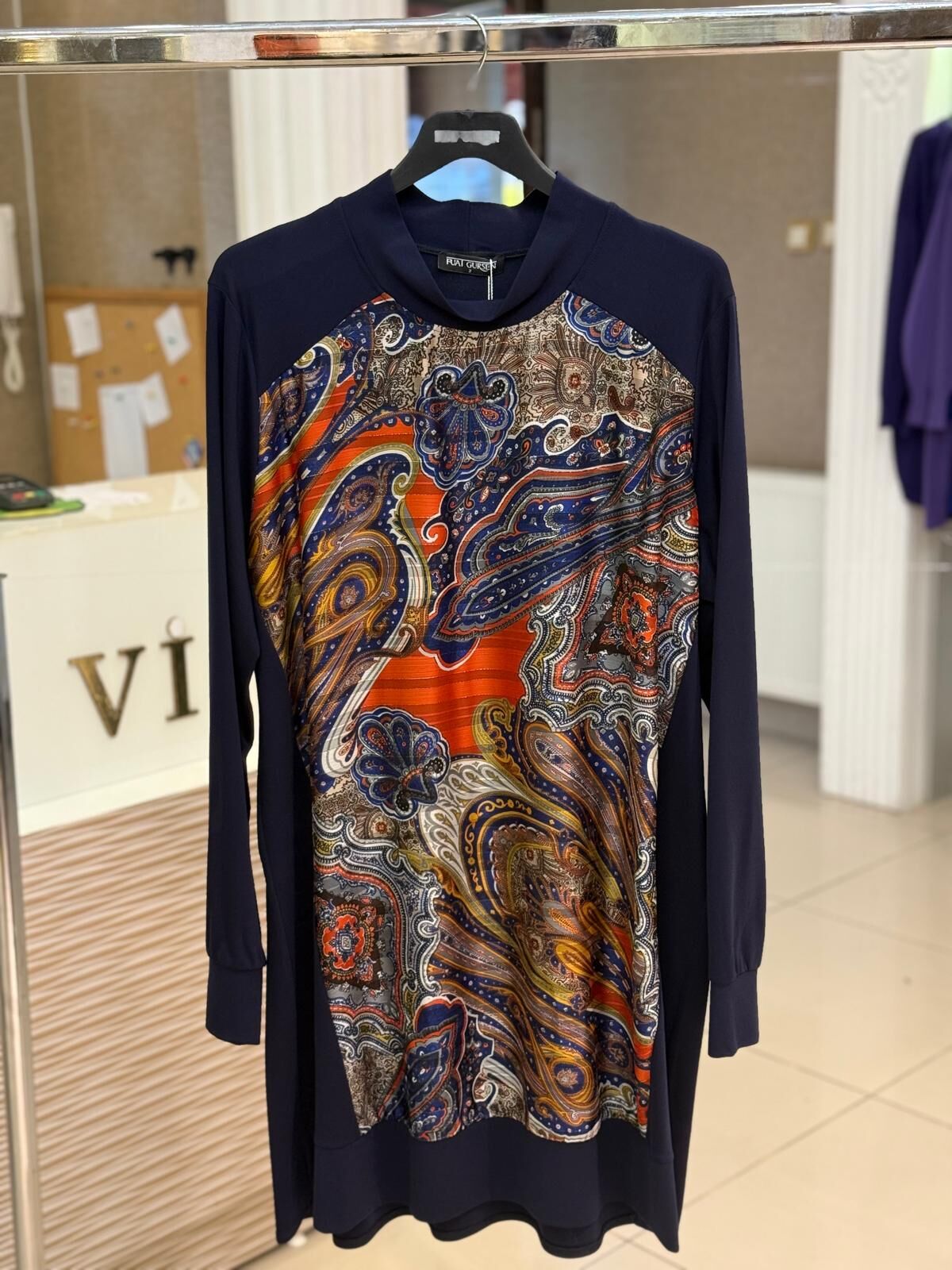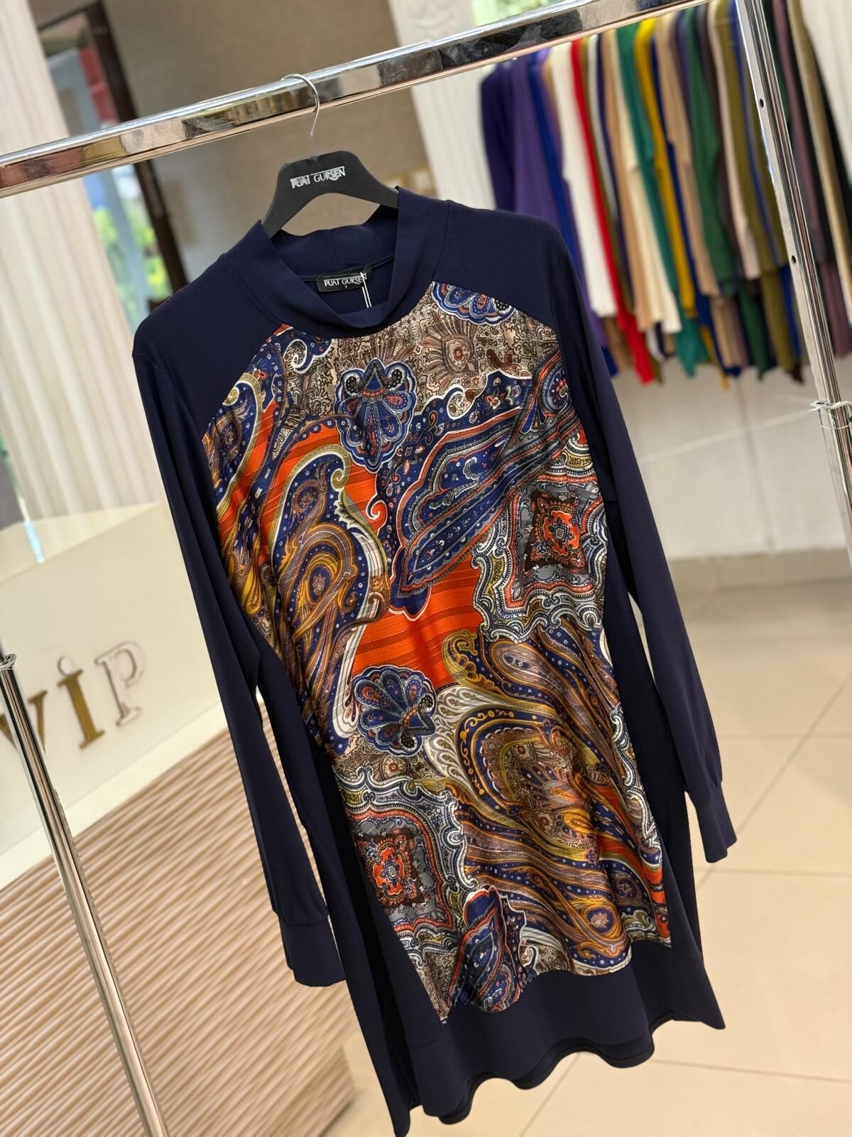 FUAT GÜRŞEN LACİVERT ŞAL DESEN TUNİK