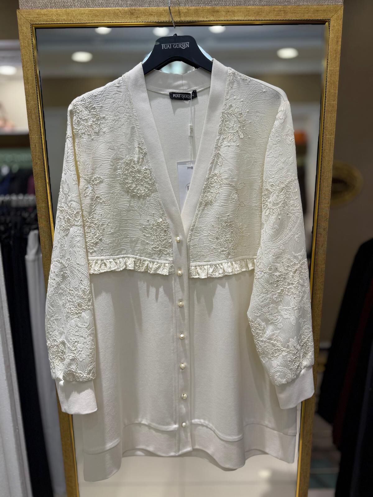 FUAT GÜRŞEN - PAYETLİ İNCİ DÜĞME TUNİK - EKRU