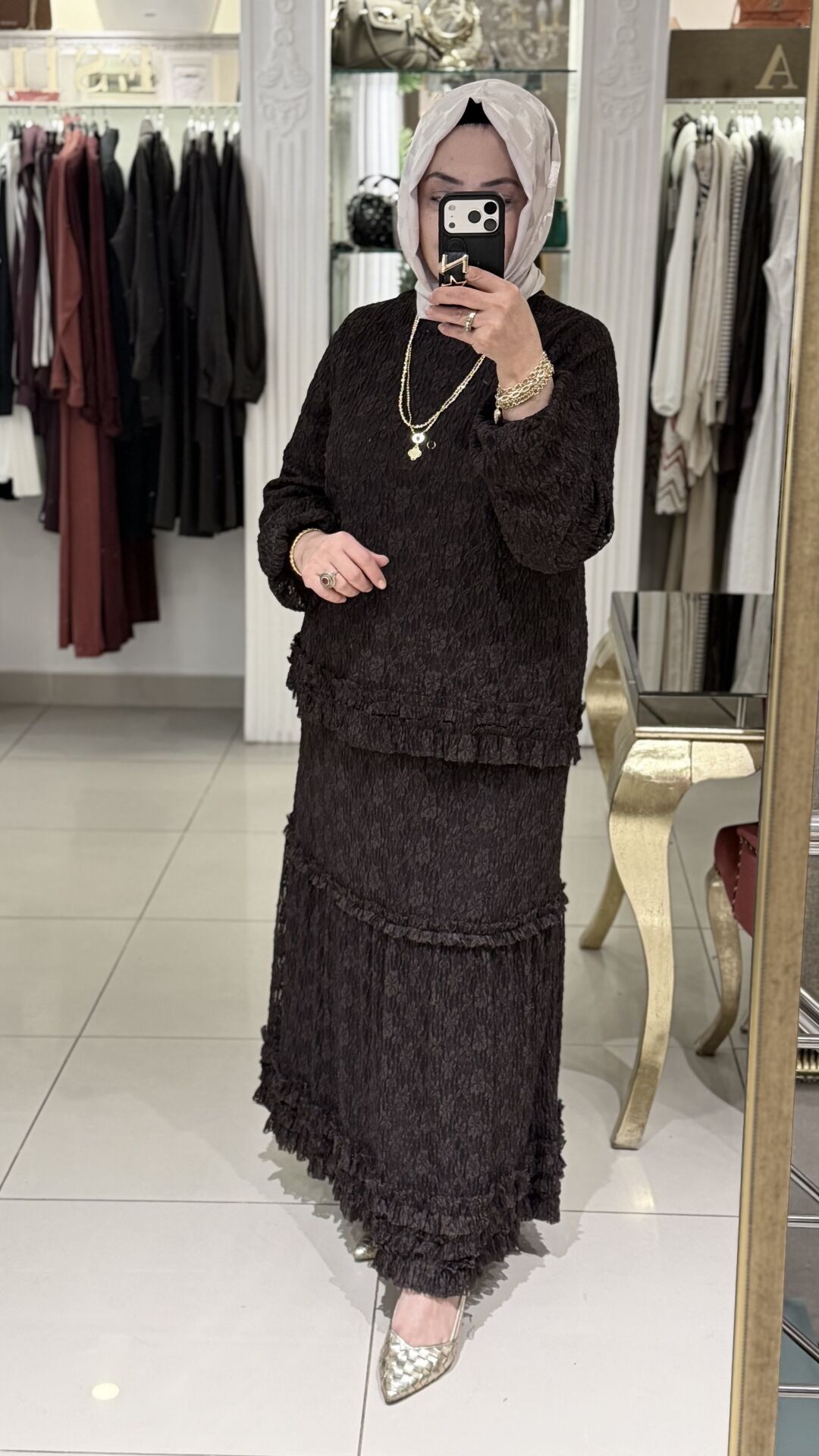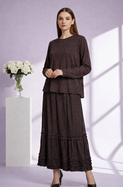 Nurcan Çetin -26425 Brode Etekli Takım - Kahve