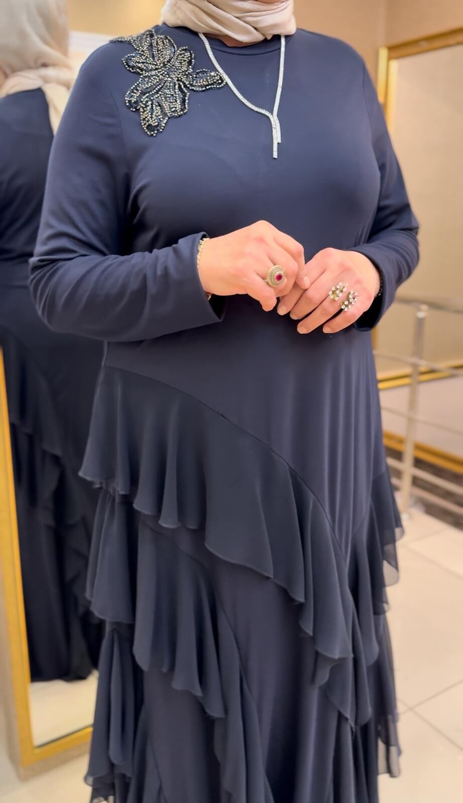 OMZU BONCUK İŞLEMELİ ETEĞİ ŞİFON DTY. ELBİSE/NURCAN ÇETİN