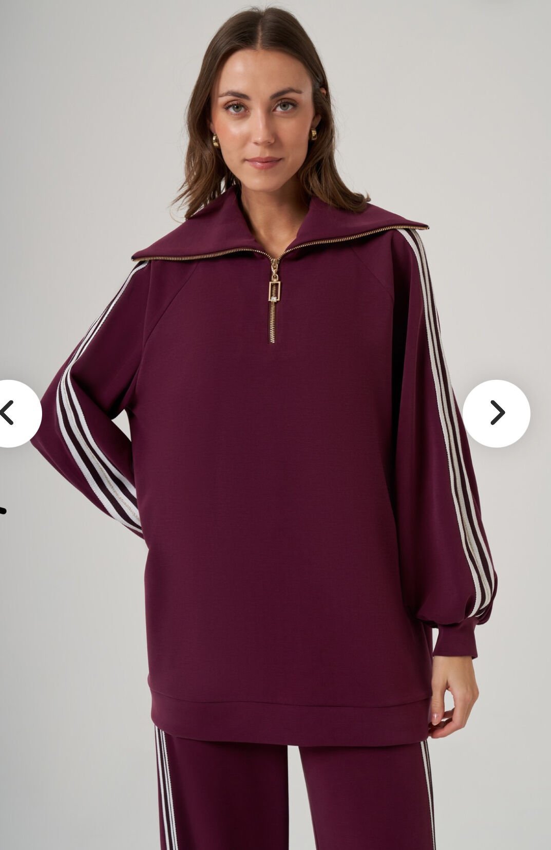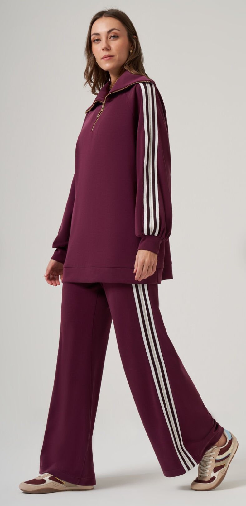 Nuss 1093 Gemici Yaka Şerit Detay Pantolonlu Takım - Mürdüm