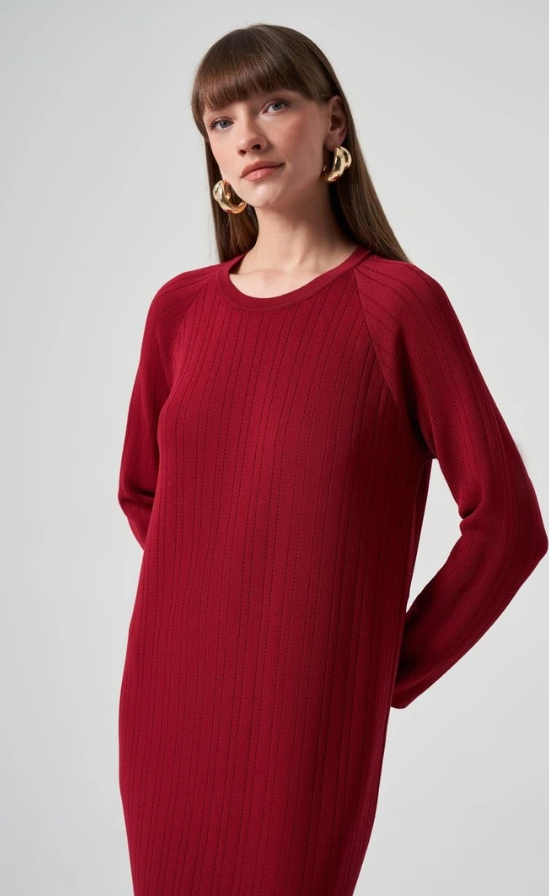 Nuss 1401 Kalın Fitilli Merserize Elbise - Bordo 3Z1JS9FKWE