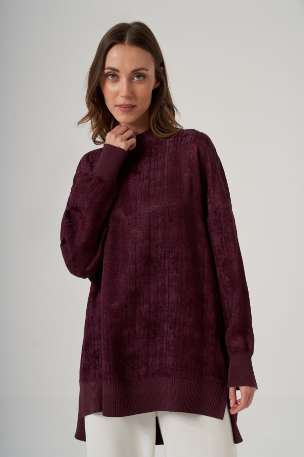 Nuss- 3013 İpek Cupra Kendinden Desenli Tunik - Mürdüm