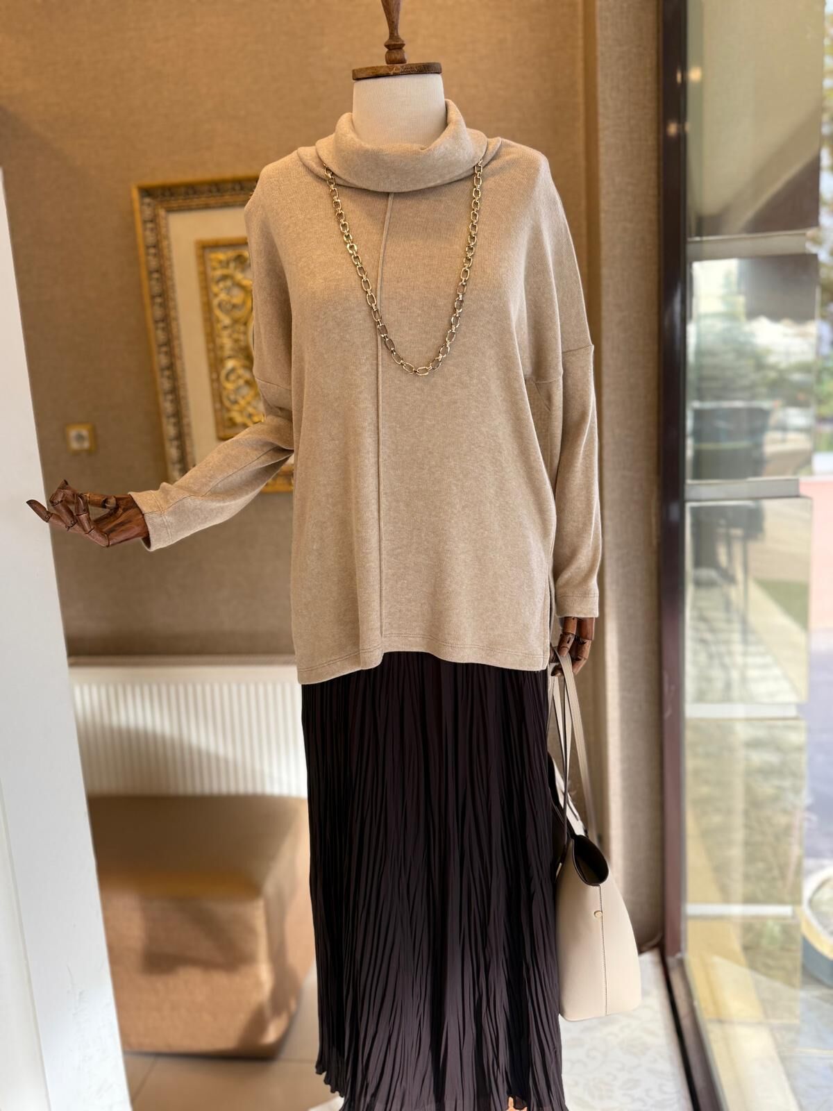 SEÇİL DÜŞÜK DEGAJE YAKA TUNİK-BEJ