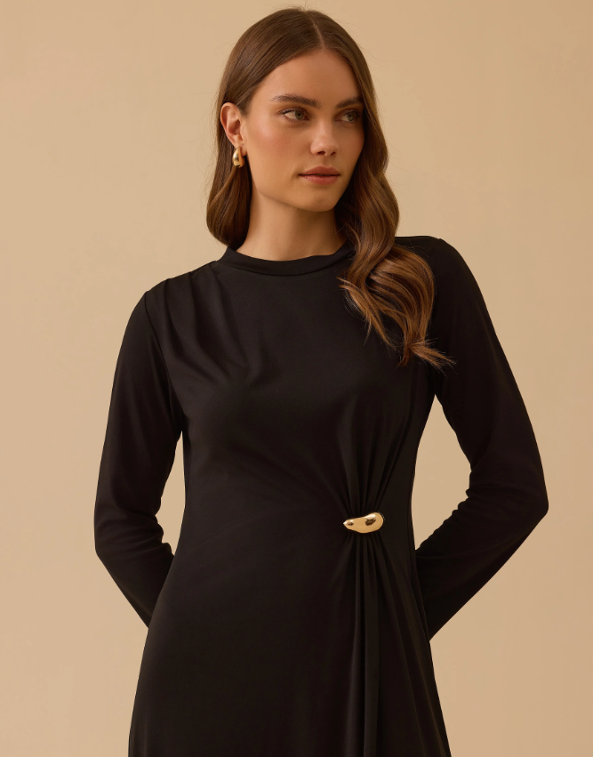 Seçil - Metal aksesuarlı Viscon Elbise