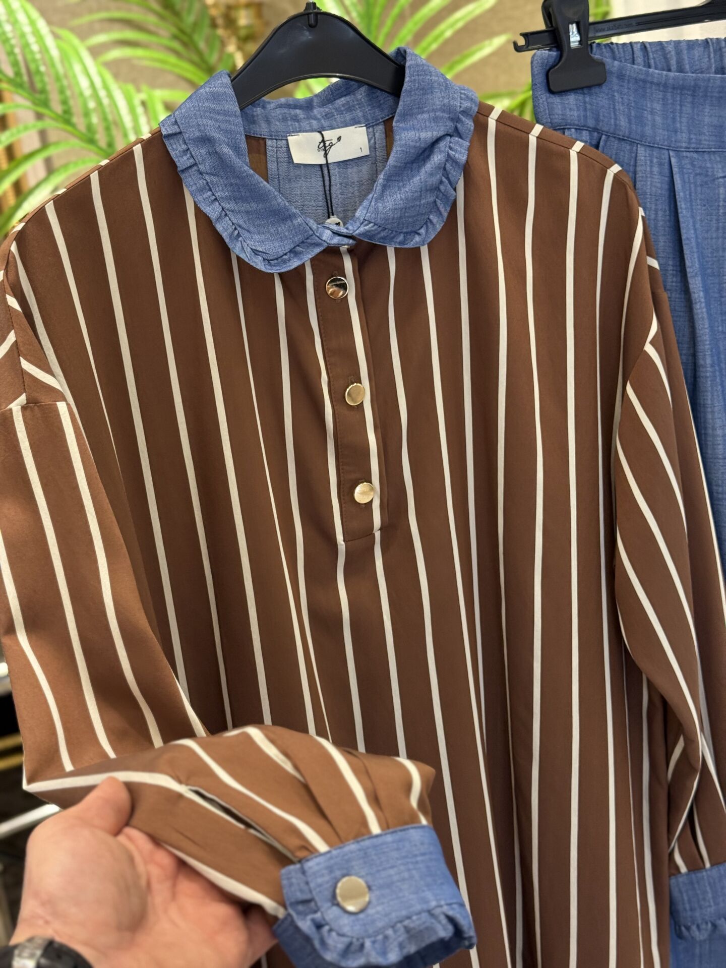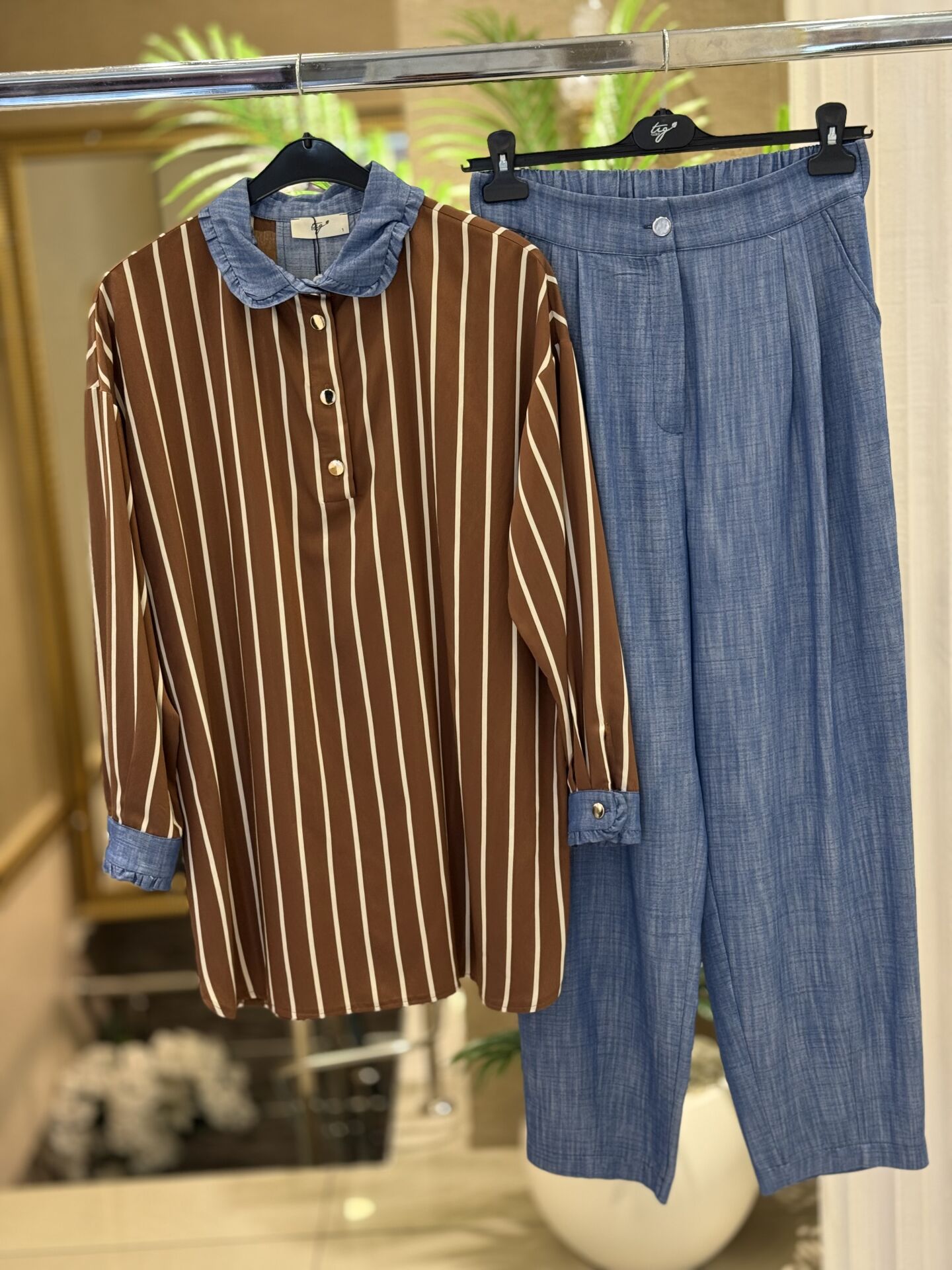 TığTriko Yakası Fırfır Detaylı Tunik Pantolon Takım