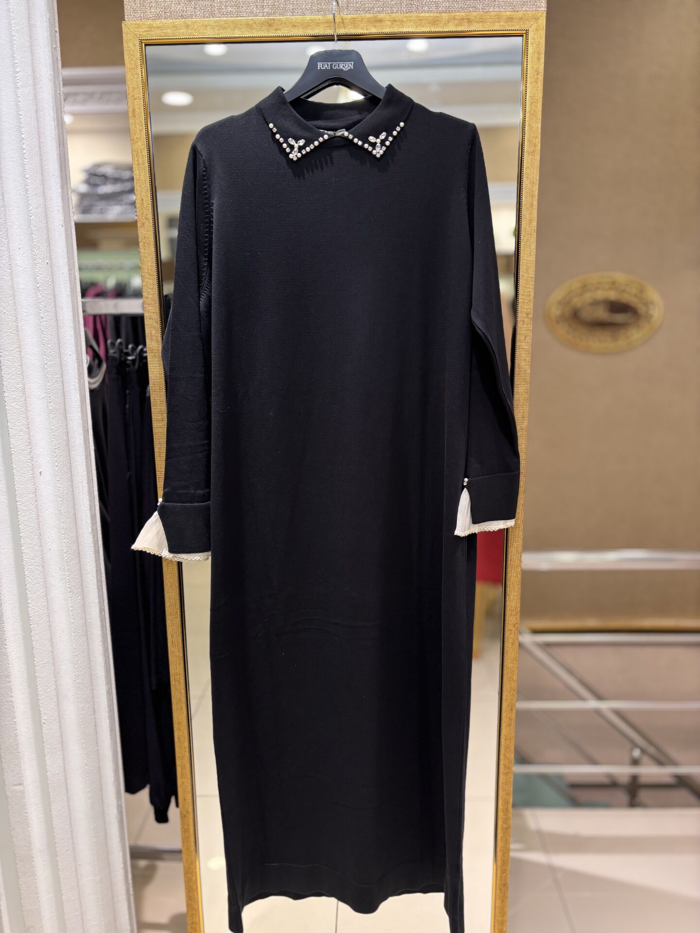 YAKASI TAŞ & KOLU TÜL DTY TRİKO ELBİSE / BELGİN
